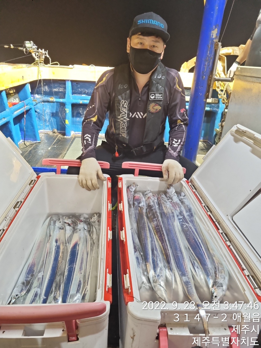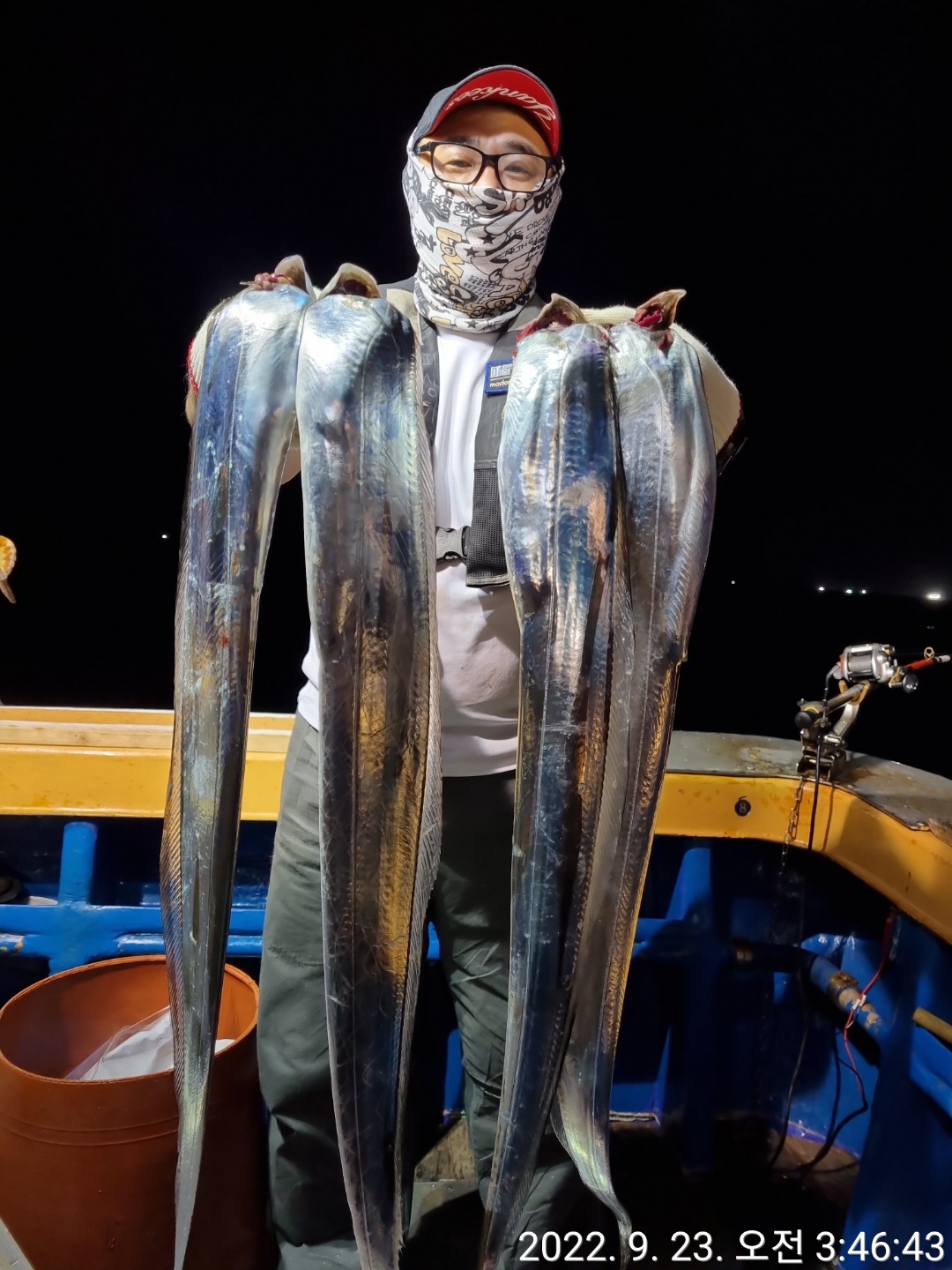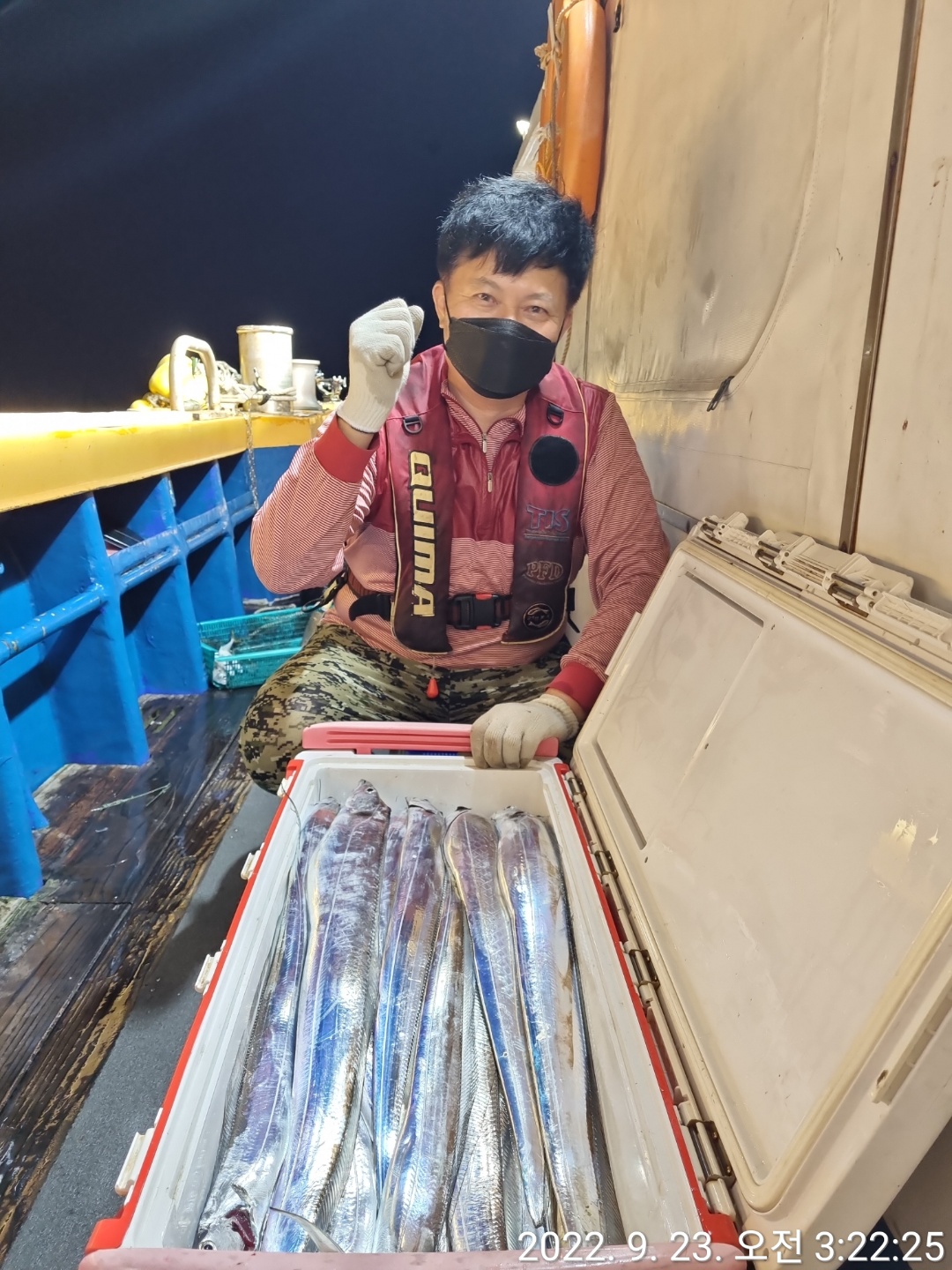 오랜만에 출항했네요아홉분 모시고 출항했습니다^^갈치낚시 처음이신 어르신부터 좀 해보신분들 까지~전원 만족하신 하루^^쿨러 물 다 빼고도 더이상 들어갈데 없다고피곤하시다며 일찍들 접으시고처음이신분도 한쿨러 가득~^^돌아가시며 너무 재미있었다고,즐거운 낚시 하셨다는 말씀들에큰 보람을 느낍니다^^