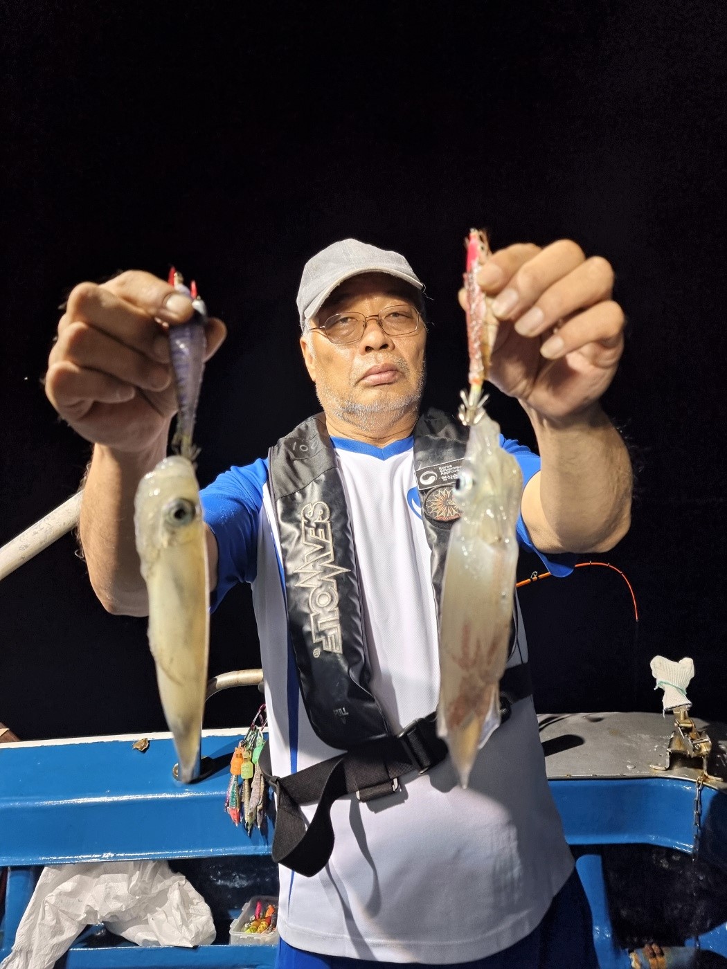 오늘은 한치8, 오징어2 정도.한치 잡으러 멀리 다녀왔습니다.초보분들 많았지만 썰물어 우당탕 하고몇마리씩 잡으시길래, 오~대박인가 싶었는데마음처럼 되진 않네요^^ㅎㅎ;;물 돌면서 뜸해지더니..따박따박 나오긴 하는데 씨알이 작아지네요.그래도 골고루 손맛 보셨습니다^^끝날때 쯤 비가 막 퍼붓고 거리도 멀어조금 일찍 마무리 했습니다~~ 수고 많으셨습니다~~^^