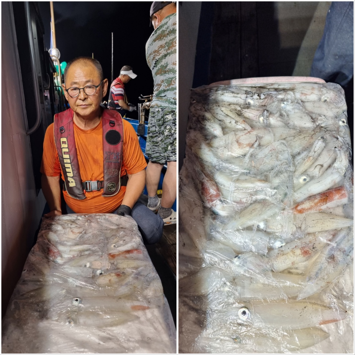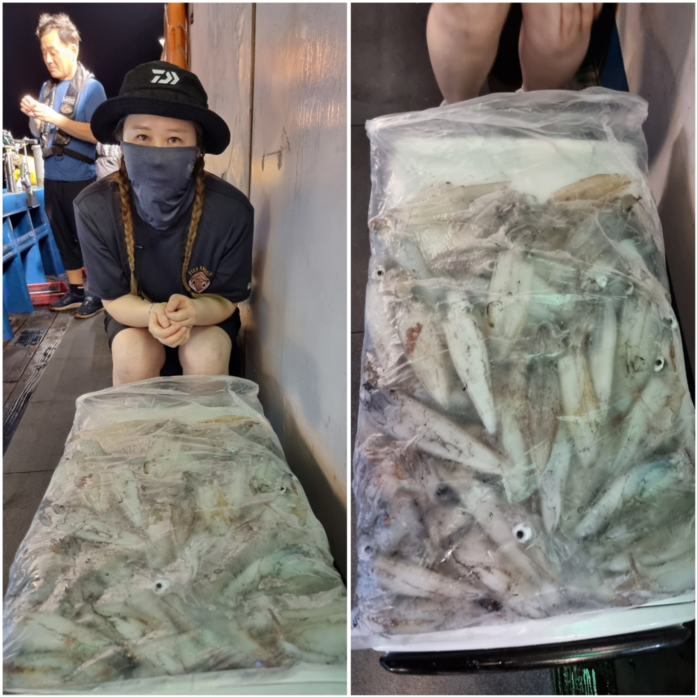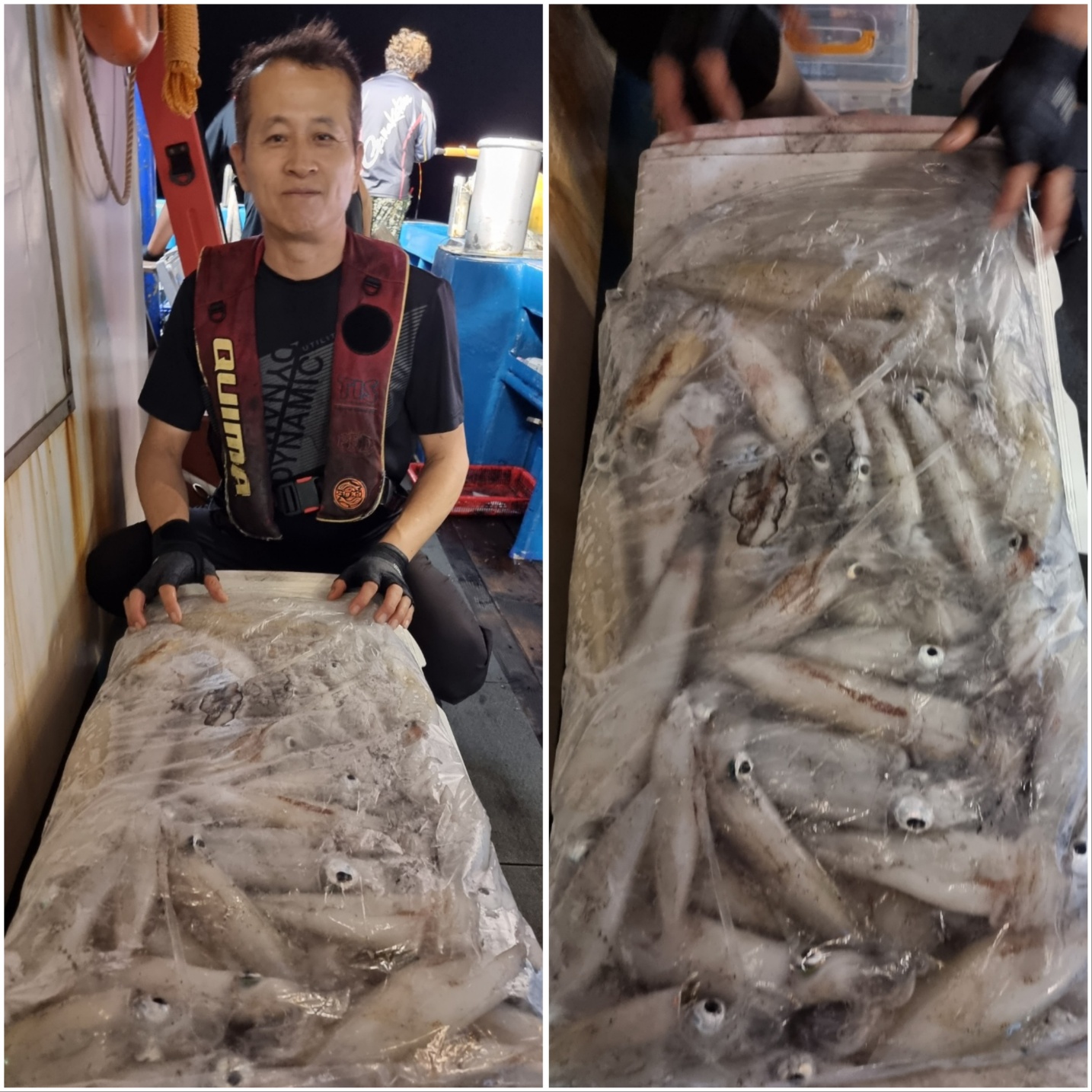 역시나 씨알 좋게 나와주는데~물창이 너무 아쉽네요 ㅠㅠ물창만 아니면 1.5배는 더 잡을텐데요....수심 맞추는거나, 줄엉킴 푸는데에어려움이 있습니다.그래도 모두 열심히 해주셔서 좋은 조황 올릴 수 있는거 같습니다!!한치가 아직 많이 있습니다~~빠지기 전에 얼른 다녀가세요~~~~^^오늘도 화이팅!!! 해보겠습니다~!!^^