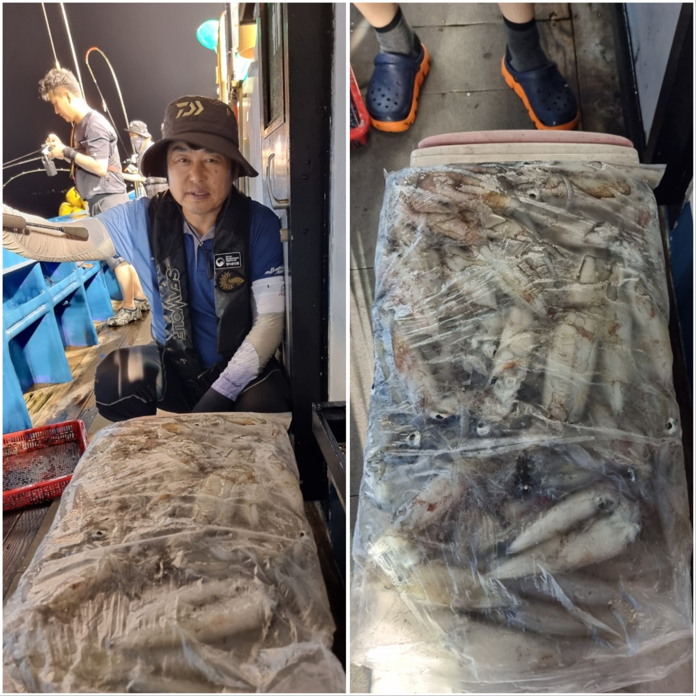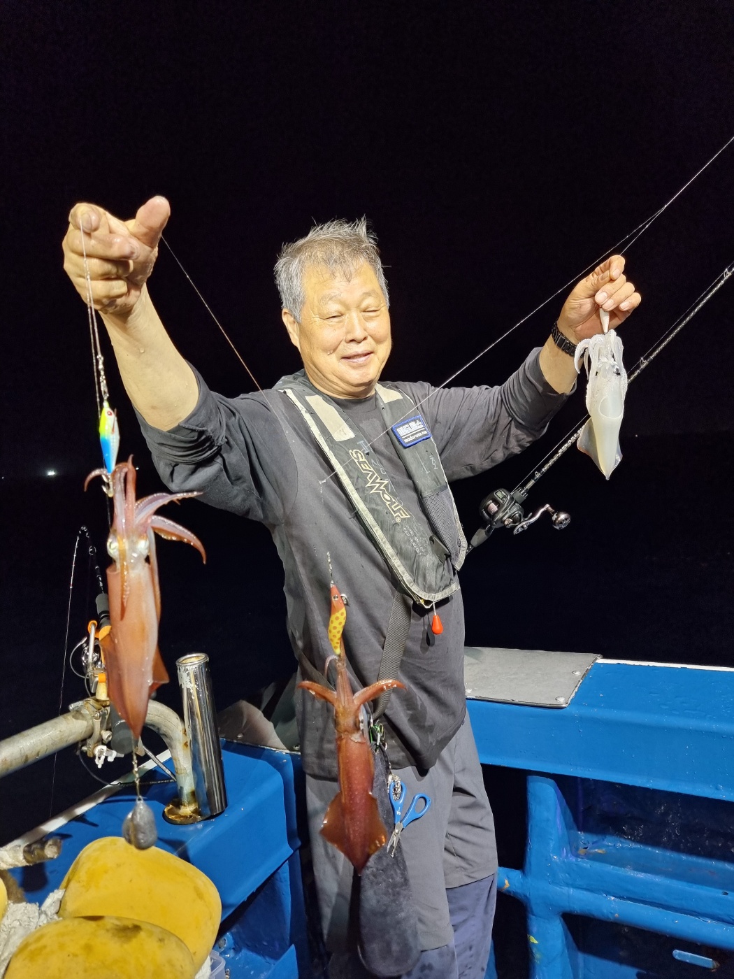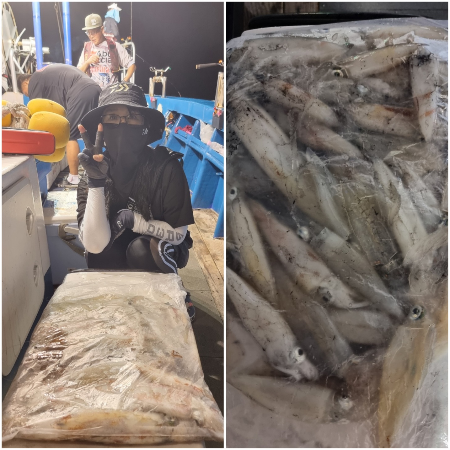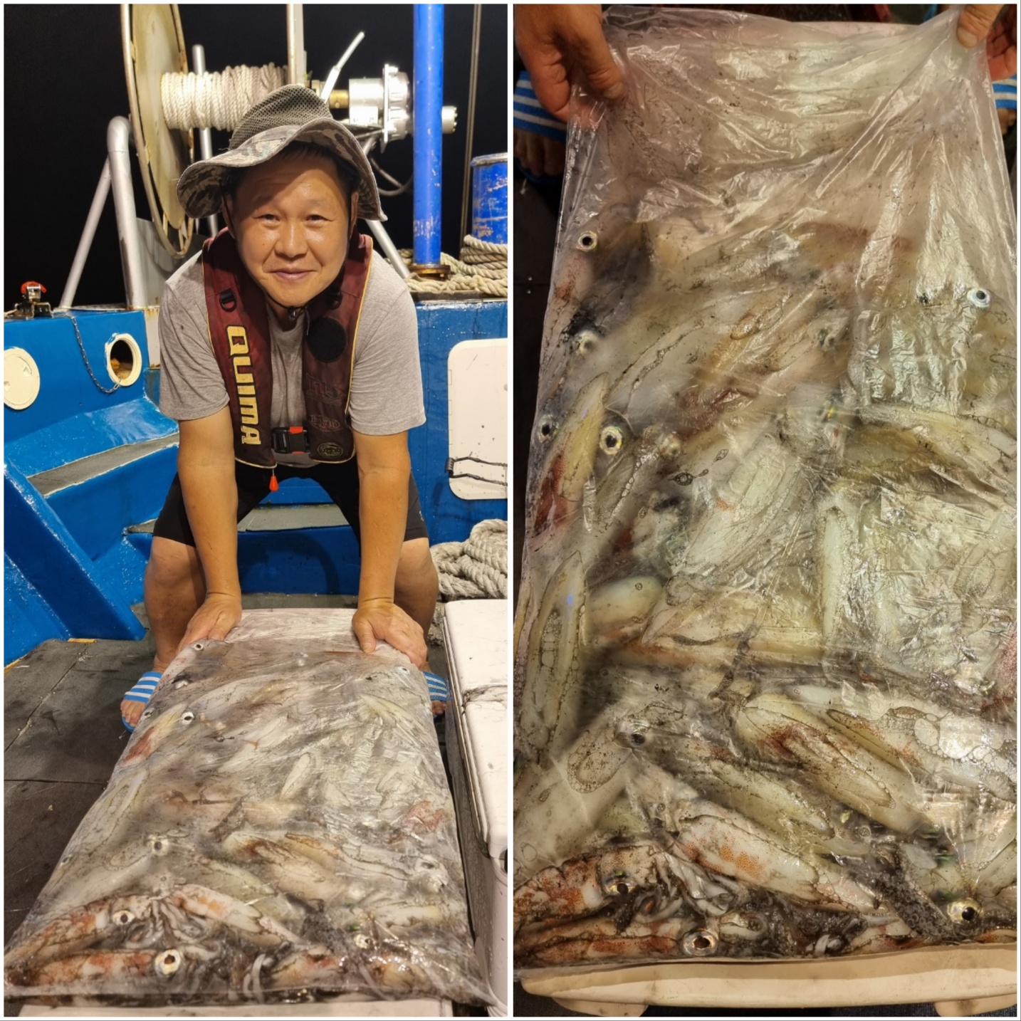 역시나 씨알 좋게 나와주는데~물창이 너무 아쉽네요 ㅠㅠ물창만 아니면 1.5배는 더 잡을텐데요....수심 맞추는거나, 줄엉킴 푸는데에어려움이 있습니다.그래도 모두 열심히 해주셔서 좋은 조황 올릴 수 있는거 같습니다!!한치가 아직 많이 있습니다~~빠지기 전에 얼른 다녀가세요~~~~^^오늘도 화이팅!!! 해보겠습니다~!!^^