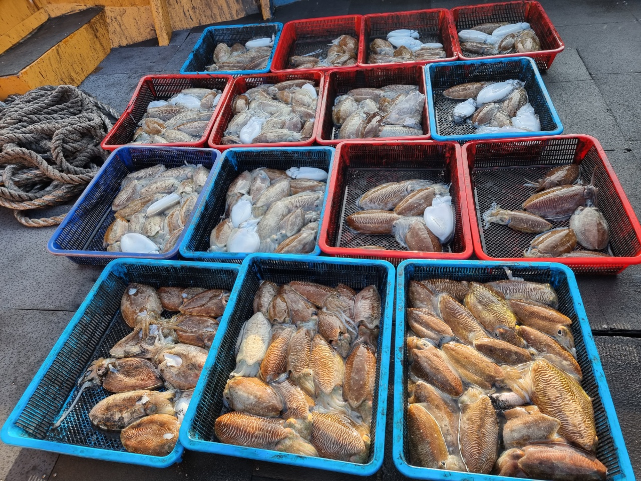 화창한 날씨에 잔뜩 기대하고 나갔습니다^^그런데 잡는분만 잡으셔서 편차가 많이 났네요...ㅠㅠ풍 빼고 작업해도 마찬가지여서마음이 아팠습니다...많이 잡으신 분이 40수 하셨습니다.편차가 많이 나는 날은 선장 속도 탑니다...ㅠㅠ오늘도 모두 고생 많으셨습니다~